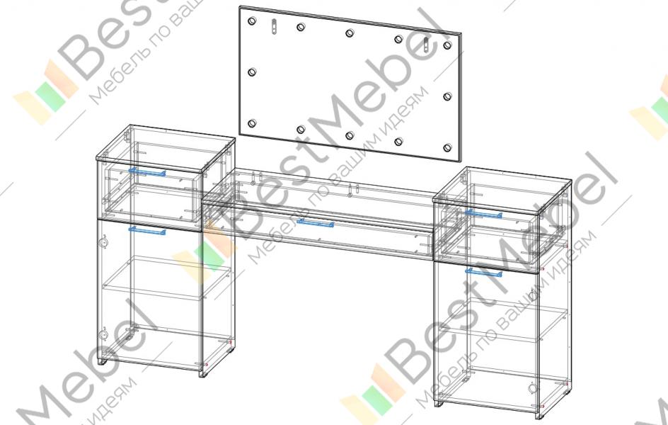 Эта модель отличается не только стильным современным дизайном, но и большой вместительностью. В боковых тумбах и выдвижных ящиках этого туалетного столика разместятся самые разные вещи, от косметики до сумок. Навесное зеркало декорировано по периметру светодиодными лампочками для дополнительного освещения во время нанесения макияжа и создания уютной обстановки. Уместный и в гостиной, и в спальне, туалетный столик Make up XXL BMS можно заказать, выбрав оптимальный размер, в нашем интернет – магазине.