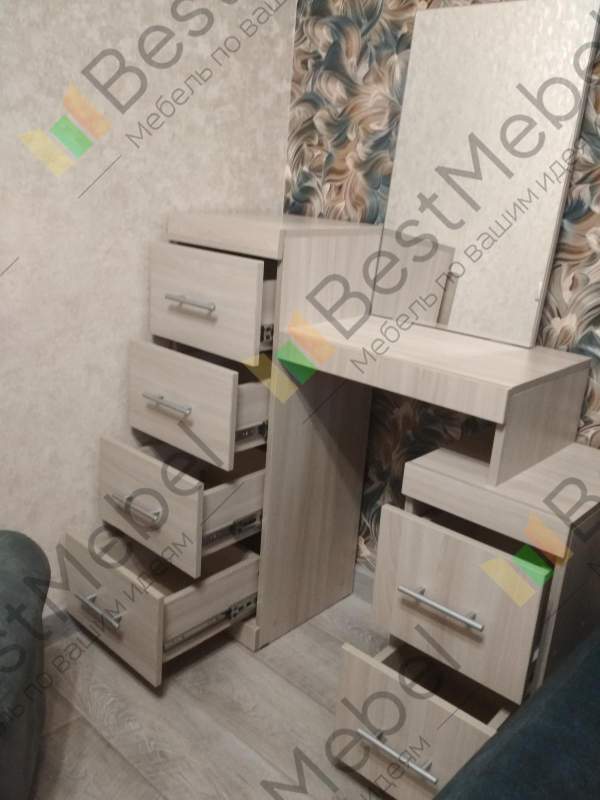Магазин отличный. Заказывали мебель по своим размерам. Собирали сами. Все детали подписаны, схема имеется. Единственное, что несколько раз напоминали, что нам надо в горизонтальном отражении туалетный столик, а схему присылали в обычном расположении. В итоге прислали схему в горизонтальном отражении. Заказывали ещё тумбу прикроватную Лотос и пуф. И ещё получили тумбу Рондо (на фото) за 1р. :)))