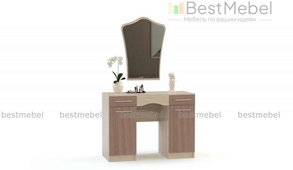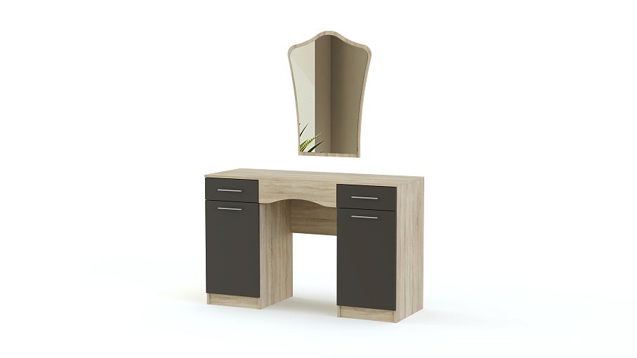 Туалетный столик СП-483 BMS поможет расположить большое количество всех необходимых уходовых средств и декоративной косметики благодаря продуманной и вместительной конструкции. Модель, выполненная в контрастном сочетании темных и светлых оттенков, укомплектована двумя выдвижными ящиками для хранения мелочей, двумя распашными отделениями с полками и широкой столешницей, на которой вы можете разместить под рукой все предметы первой необходимости. Эстетическую завершенность изделию придает фигурное зеркало, которое можно разместить на любой удобной высоте. Купить туалетный столик СП-483 BMS приглашаем в наш интернет-магазин.