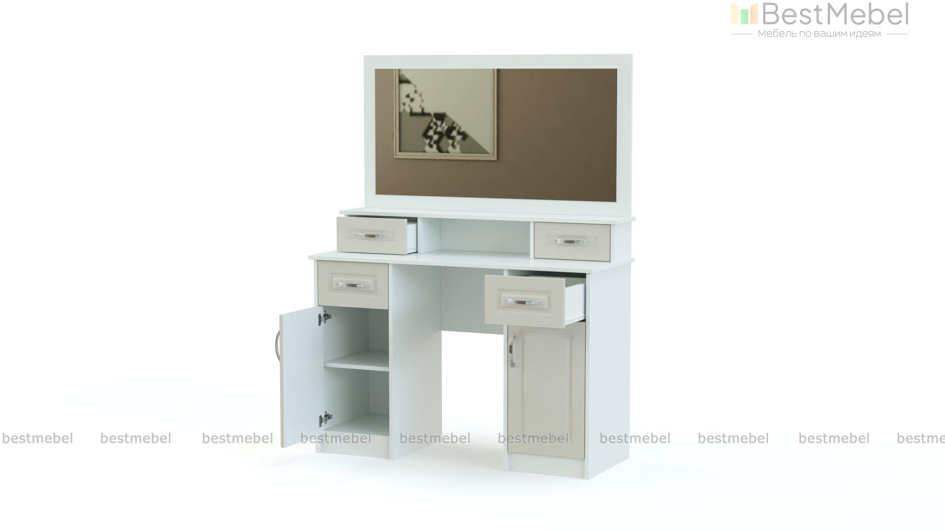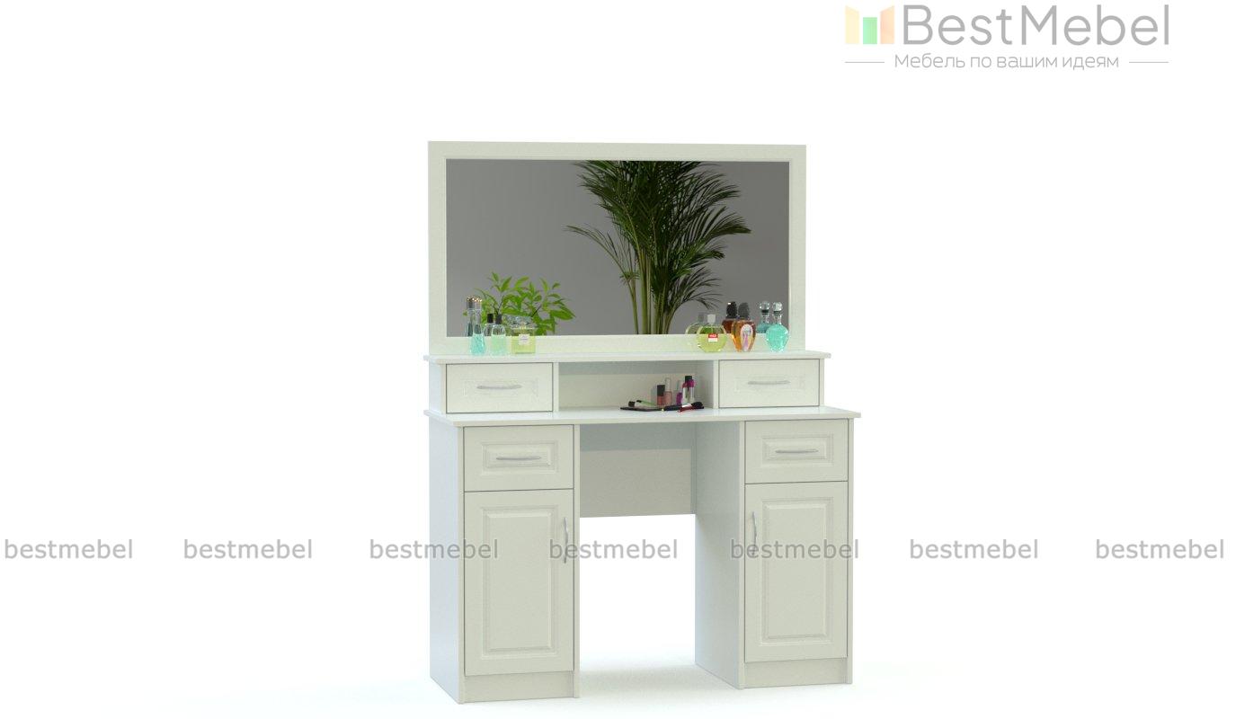 Туалетный столик Янна 5 BMS – прекрасный выбор для создания роскошного классического интерьера. Выполненный в нежном белом цвете, столик украшен по фасаду рамочной фрезеровкой. Двухтумбовая модель с вместительными выдвижными ящиками и распашными отделениями для удобного хранения косметики и аксессуаров дополнена надстройкой с ящиками и большим прямоугольным зеркалом. Купить туалетный столик Янна 5 BMS и оборудовать комфортную макияжную зону вам поможет наш интернет-магазин.