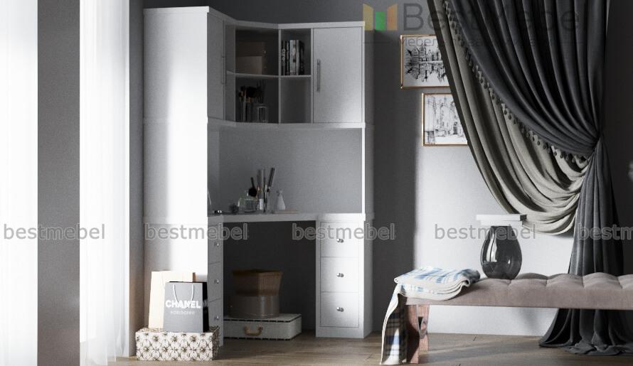 Угловой косметический столик Дилан BMS будет удобен не только для ухода за собой, но и для работы за ноутбуком. Многофункциональная модель, незаменимая в малогабаритных помещениях, имеет практичную угловую конструкцию. В нижней части располагается стол с просторной столешницей и двумя тумбами, а верхняя представляет собой надстройку с двумя распашными отделениями и нишами. Лаконичный дизайн и исполнение в белом цвете станут отличным выбором для современного интерьера. Купить угловой косметический столик Дилан BMS приглашаем в наш интернет-магазин.