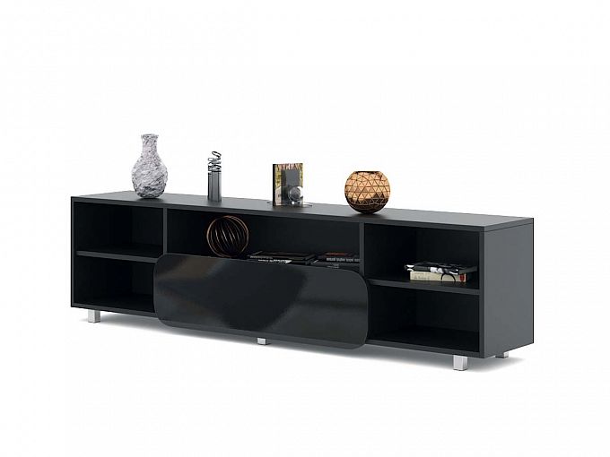 Тумба под ТВ Модерно 10.1 BMS станет идеальным решением для монохромных интерьеров в стиле минимализм и хай-тэк. Лаконичная и функциональная, модель оборудована просторной столешницей для ТВ, выдвижным ящиком со скругленным фасадом без ручек и открытыми полками по периметру. Глянцевая поверхность устойчива к повреждениям и выгоранию и проста в уходе. Купить тумбу под ТВ Модерно 10.1 BMS, подобрав оптимальное цветовое сочетание, вы сможете в нашем интернет-магазине.