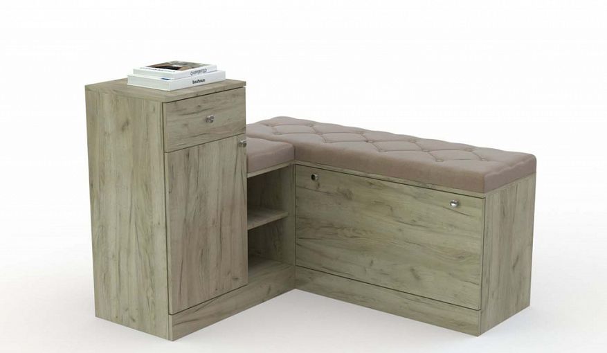 Обувница Марилин 15 BMS выполнена в современной стилистике, а каретная стяжка с пуговицами придает дизайну классические черты. Вместительная обувница с откидной дверцей, открытая секция и распашная тумба, дополненная выдвижным ящиком для мелочей, объединены в элегантной разноуровневой композиции. Сиденье с мягкой обивкой делает пользование особенно комфортным. Купить обувницу Марилин 15 BMS приглашаем в наш интернет-магазин, подобрав фурнитуру и цвет по каталогу.