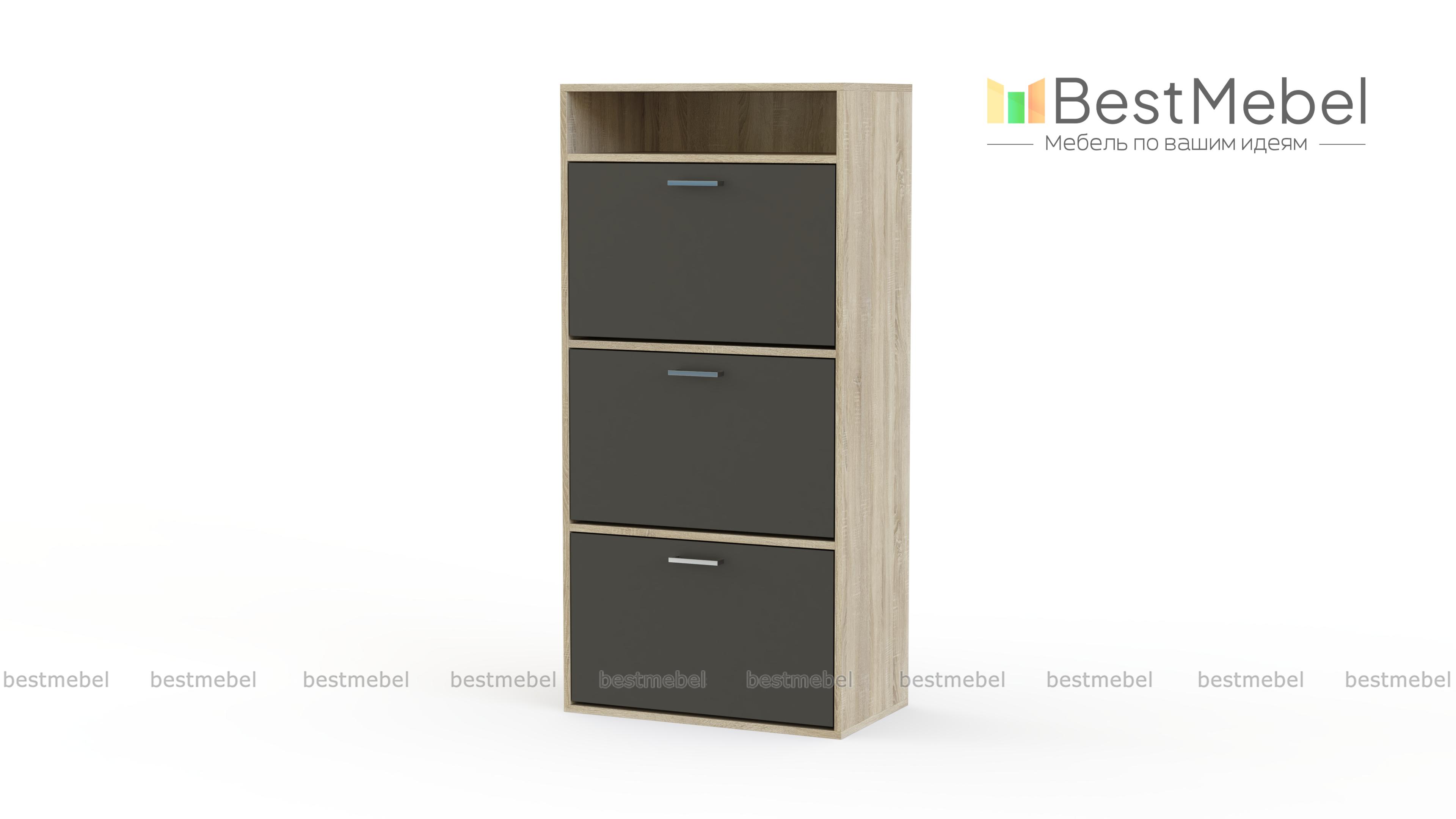 Тумба для обуви Эва 7 BMS станет практичным выбором для малогабаритных прихожих. Модель с вертикальным расположением обуви отличается небольшой глубиной, но при этом вместительна за счет высоты. Тумба оборудована нишей для хранения уходовых средств и мелочей и тремя откидными обувными лотками. Корпус древесного оттенка дополнен лаконичным матовым фасадом с ручками-скобами. Купить тумбу для обуви Эва 7 BMS, подобрав оптимальное цветовое решение, вы сможете в нашем интернет-магазине.