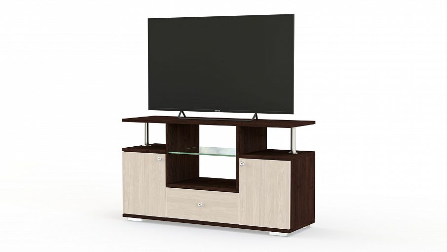 Тумба для ТВ Максима BMS – простое и экономичное решение для оформления зоны отдыха. Модель выполнена в контрастных теплых древесных тонах. Благодаря просторной столешнице, нише и распашному застекленному отделению тумба разместит не только телевизор, но и прочую видеоаппаратуру, а также книги и бытовые мелочи. Купить тумбу для ТВ Максима BMS вы сможете в нашем интернет-магазине по демократичной цене.