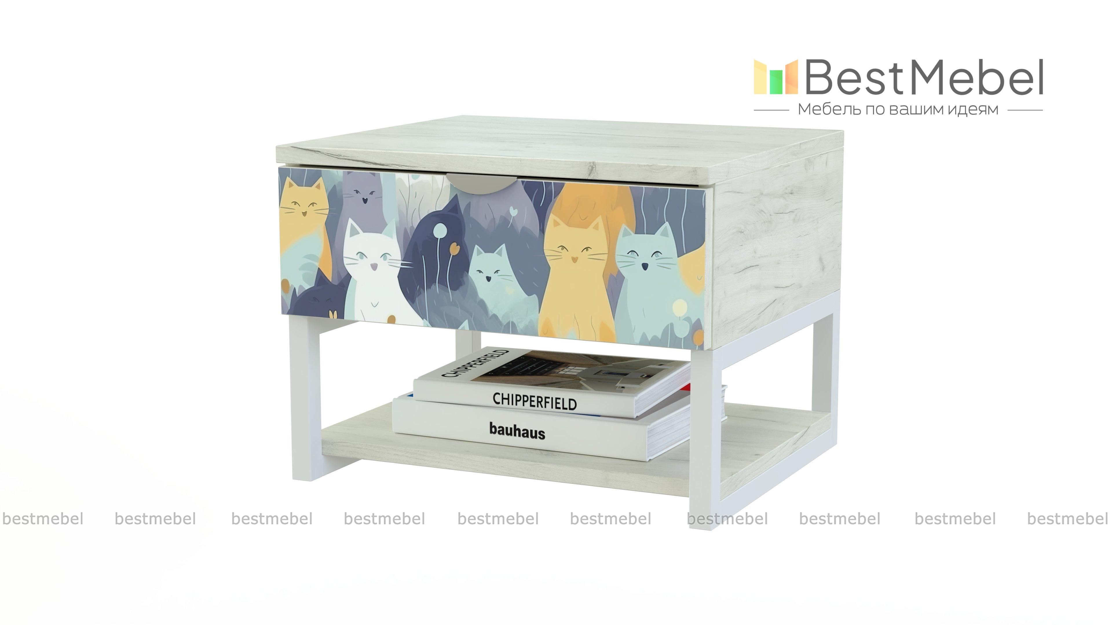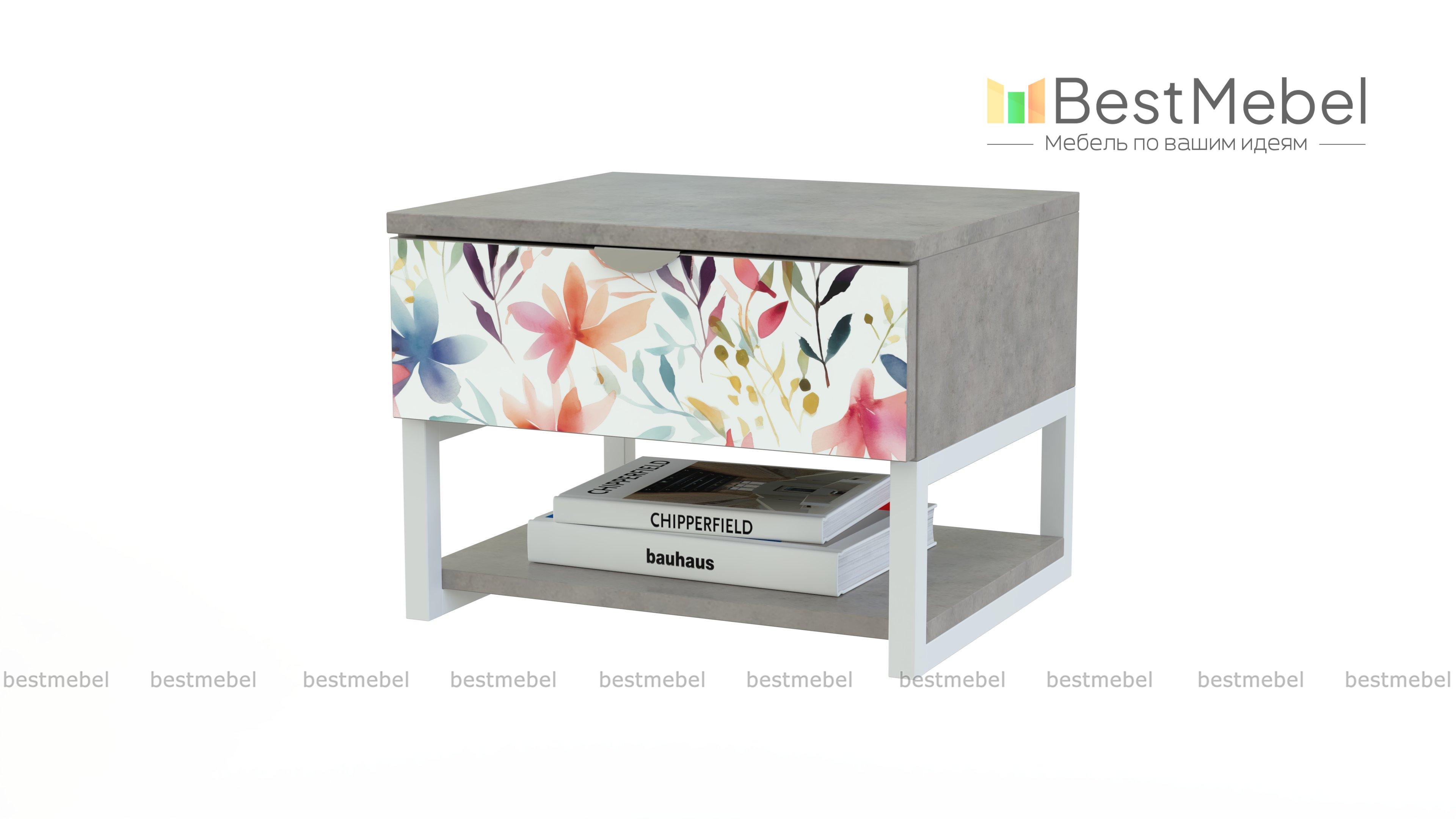 Тумба Элли 13 BMS выглядит особенно нежно благодаря акварельному рисунку на фасаде. Модель с легкими и прочными опорами из окрашенного металла гармонично дополнит современные спальни, где много света и «воздуха». Для удобного хранения мелких вещей, книг и журналов конструкцией предусмотрены выдвижной ящик и открытая полка в нижней части тумбы. Купить тумбу Элли 13 BMS с возможностью выбора размеров, цвета и фурнитуры приглашаем в наш интернет-магазин.