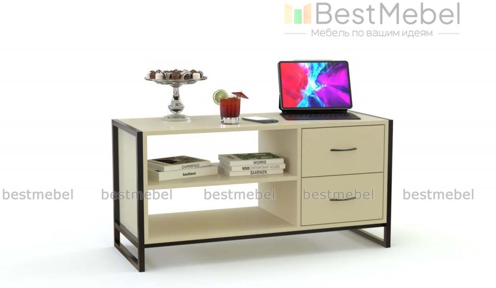 Тумба Офелия 17 BMS с корпусом в ванильных тонах и металлическими опорными рамами выполнена в индустриальном стиле. Многофункциональная тумба поможет вам оформить зону ТВ в небольшой гостиной, дополнит интерьер спальни или прихожей. Под широкой столешницей располагаются открытые секции под аппаратуру, книги или аксессуары и два вместительных выдвижных ящика для мелочей. Купить тумбу Офелия 17 BMS приглашаем в наш интернет-магазин с выбором цвета и фурнитуры по каталогу.