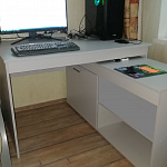 Удачный выбор размеров и цвета. Нужен был широкий стол шир.80 из-за большого монитора сидеть подальше от экрана, отдельно под ним тумба под локоть h63 размерами 130*46 - мне так удобно и все под рукой)) Изготовление 3 дня, доставка в 6 утра - не привязан целый день ждать, сразу сами собрали и работай). Качество отличное. Спасибо магазину и производителю!