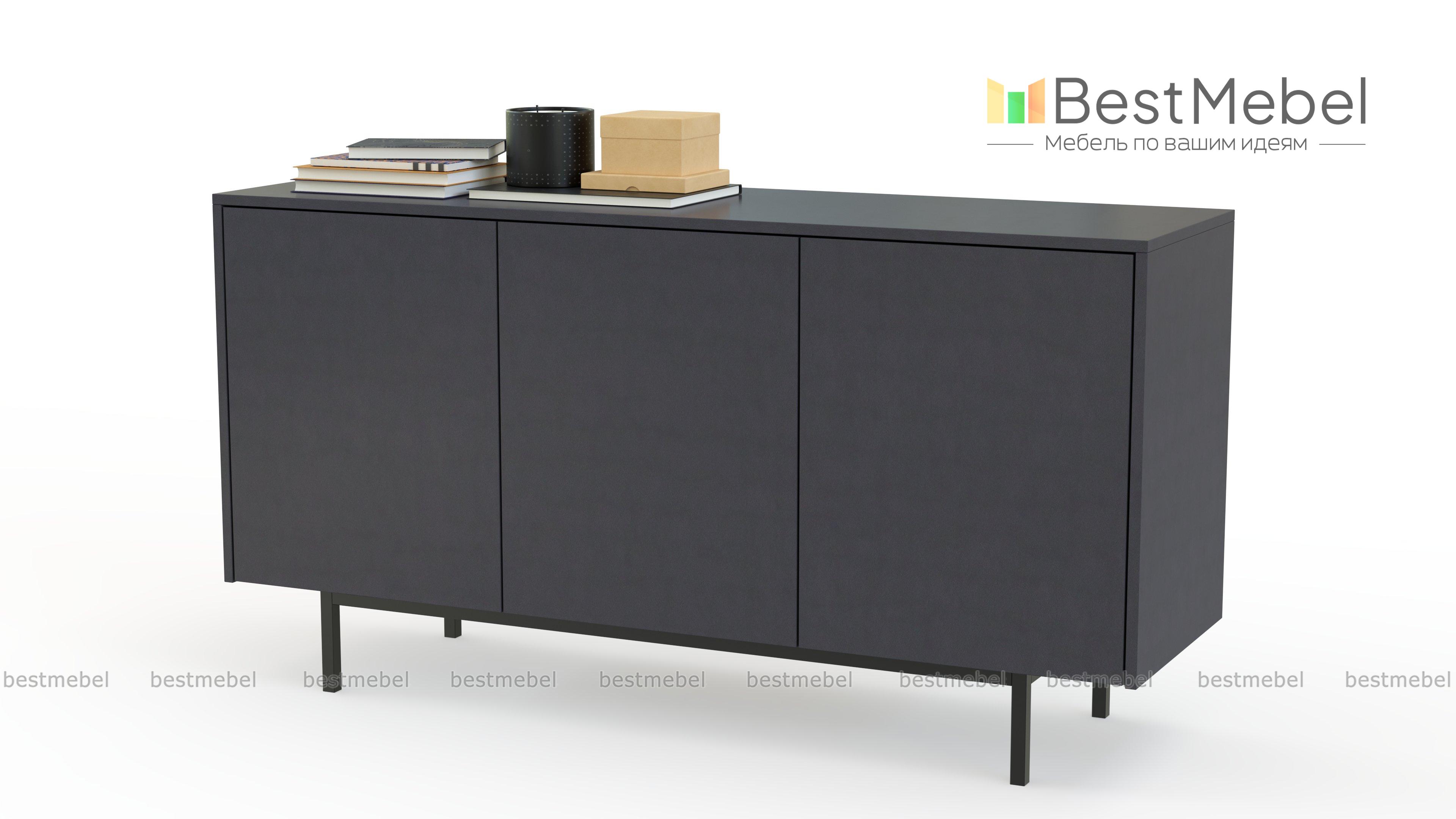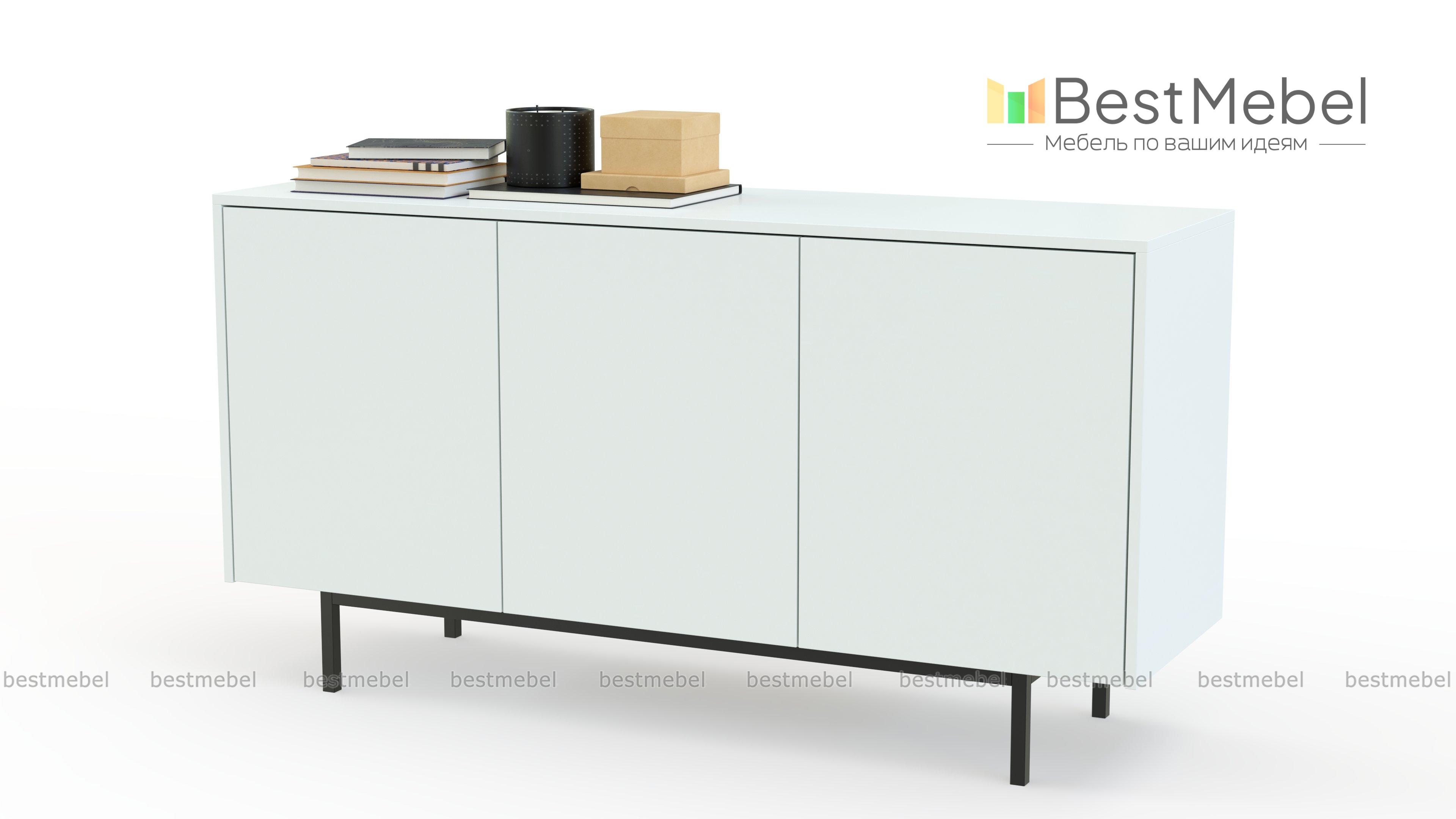 Тумба под ТВ Николь 18 BMS с тонкими металлическими опорами будет эффектно сочетаться с любой отделкой стен. Простая геометрическая форма и гладкие фасады без декора и лицевой фурнитуры делают модель практически универсальной. Три распашные дверцы скрывают просторные отделения с полками для хранения телевизионных аксессуаров и разнообразных бытовых вещей. Купить тумбу под ТВ Николь 18 BMS с индивидуальным подбором цвета и габаритов вы сможете в нашем интернет-магазине.