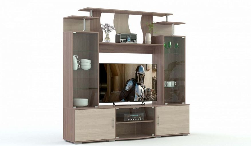 ТВ-Тумба Виста-18 BMS украсит интерьер гостиной и поможет разместить в зоне ТВ не только аппаратуру, но и посуду, книги, любимый декор. Мини-стенка с нишей под телевизор оборудована распашными отделениями с глухими и стеклянными дверцами и открытыми полками. Выполненная в приглушенных древесных тонах и декорированная волнообразно вырезанными элементами, тумба делает гостиную по-настоящему уютной. Купить ТВ-Тумбу Виста-18 BMS вы сможете в нашем интернет-магазине с выбором цвета по каталогу.